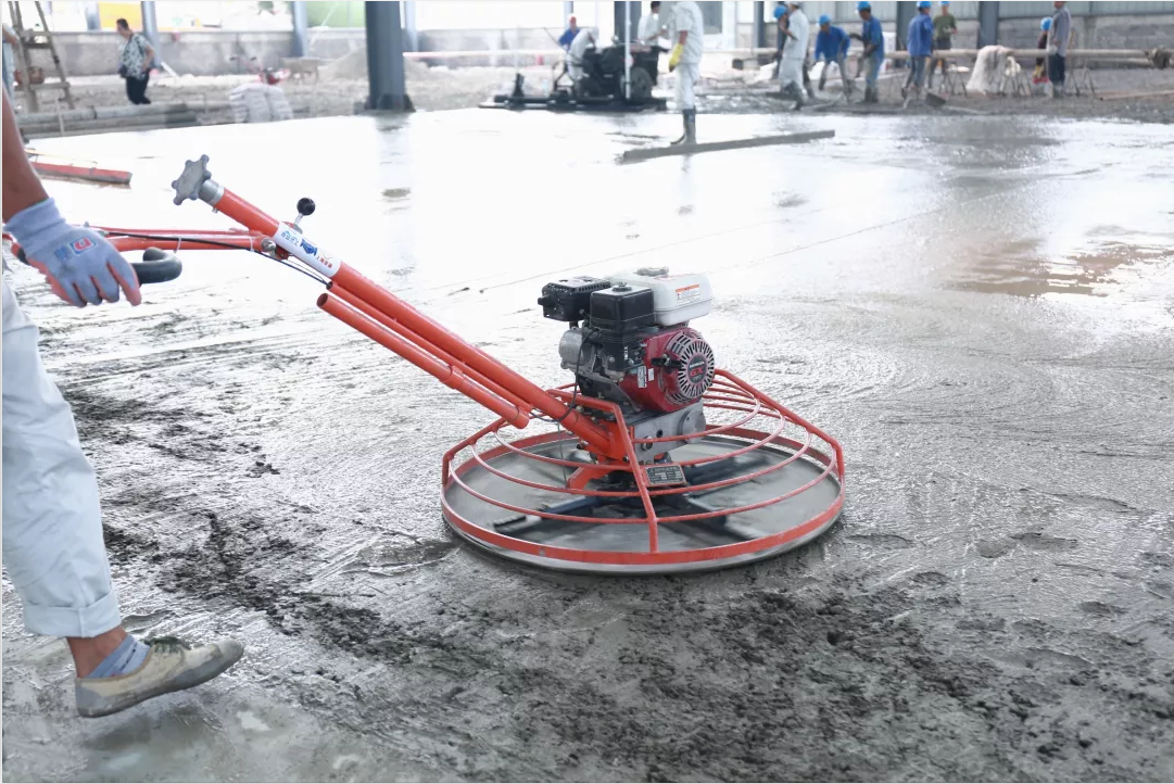 混凝土初凝后,駕駛型抹平機(jī)提漿