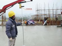 3、激光掃平儀控制砼澆注:在砼澆注之前將標(biāo)高設(shè)定在柱筋上,并將準(zhǔn)確的標(biāo)高引到激光掃平儀控制系統(tǒng),砼澆注人員刮平時將標(biāo)高控制在比設(shè)計標(biāo)高高出5—10mm范圍內(nèi),為下道激光整平機(jī)整平打好礎(chǔ)。