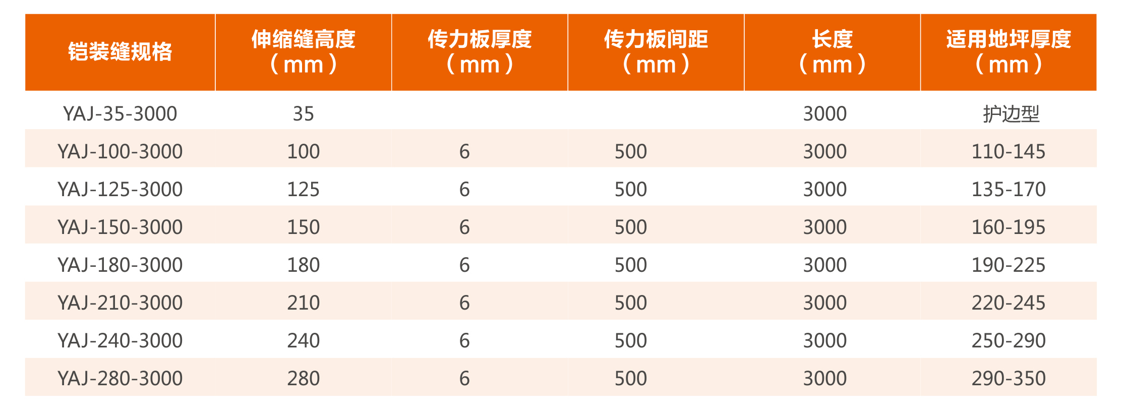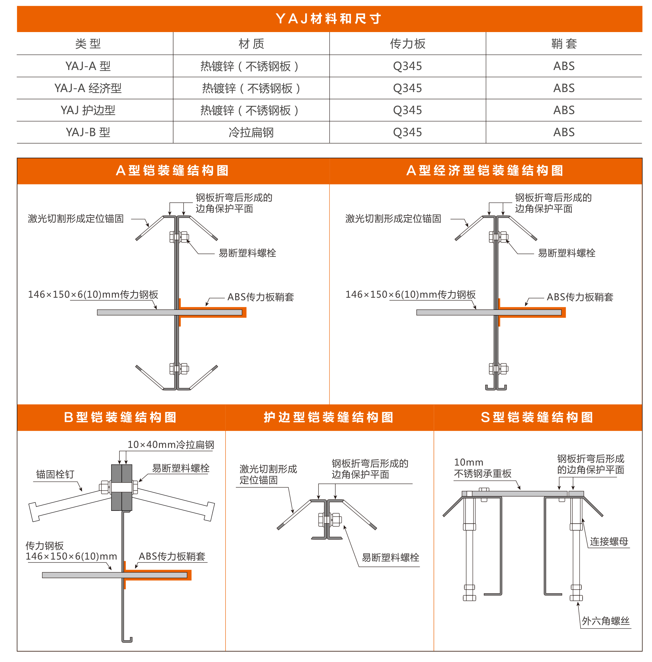 YAJ型地坪伸縮縫連接件的主要類型(材質和標準):